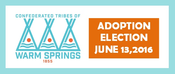 The Confederated Tribes of Warm Springs are conducting an Adoption Election on Monday June 13, 2016 at the Warm Springs Community Center from 8am – 8opm. There is a 50% voter turn out requirment for Adoption Elections so Tribal Members are encouraged to participate.