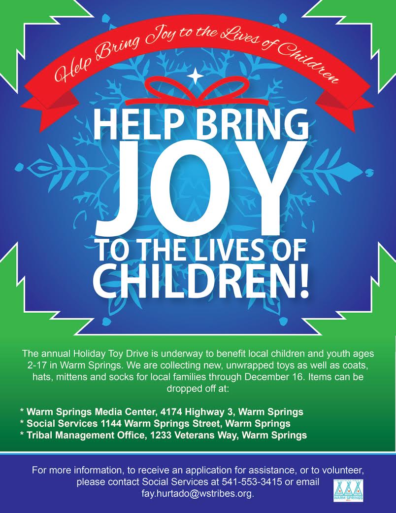 Warm Springs community partners are working toward a happy holiday for families. The annual toy drive has begun to benefit Warm Springs children and youth ages 2-17.