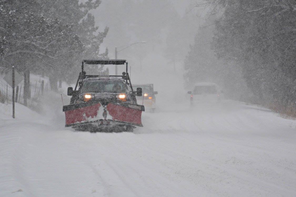 In Warm Springs, primary routes are plowed this morning but secondary roads and especially driveways and parking lots have more than a foot of snow.
