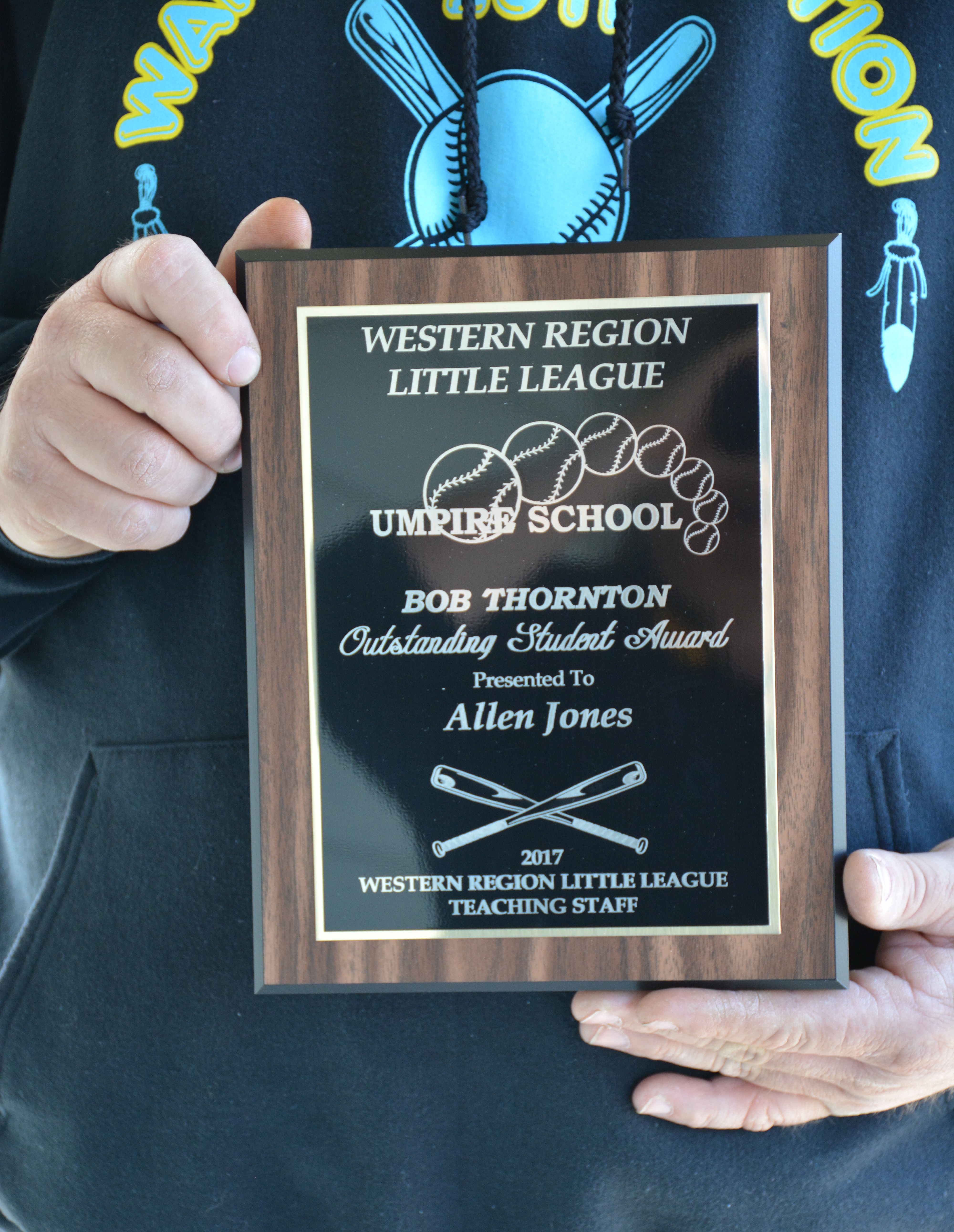 Warm Springs Nation Little League Umpire in chief Allen “Stretch” Jones participated in the Western Region Little League Umpire School in San Bernardino California in February. At the end of the week long training he was recognized with the Bob Thornton Outstanding Student Award 2017 by the Western Region Little League Teaching Staff. He is the 3rd person from Oregon to win the award and the first from Oregon Little League District 5 to win it.