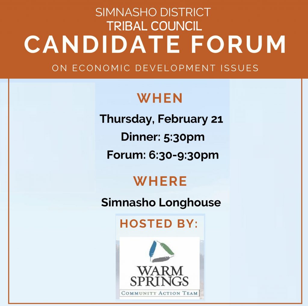 ProgramsWSCAT TC Candidate Economic Development Forum – Simnasho Posted on February 26, 2019 by sue.matters 26 Feb sue.matters KWSO Snow Update Tue. Feb. 26, 2019 Suzie Slockish & Choosh