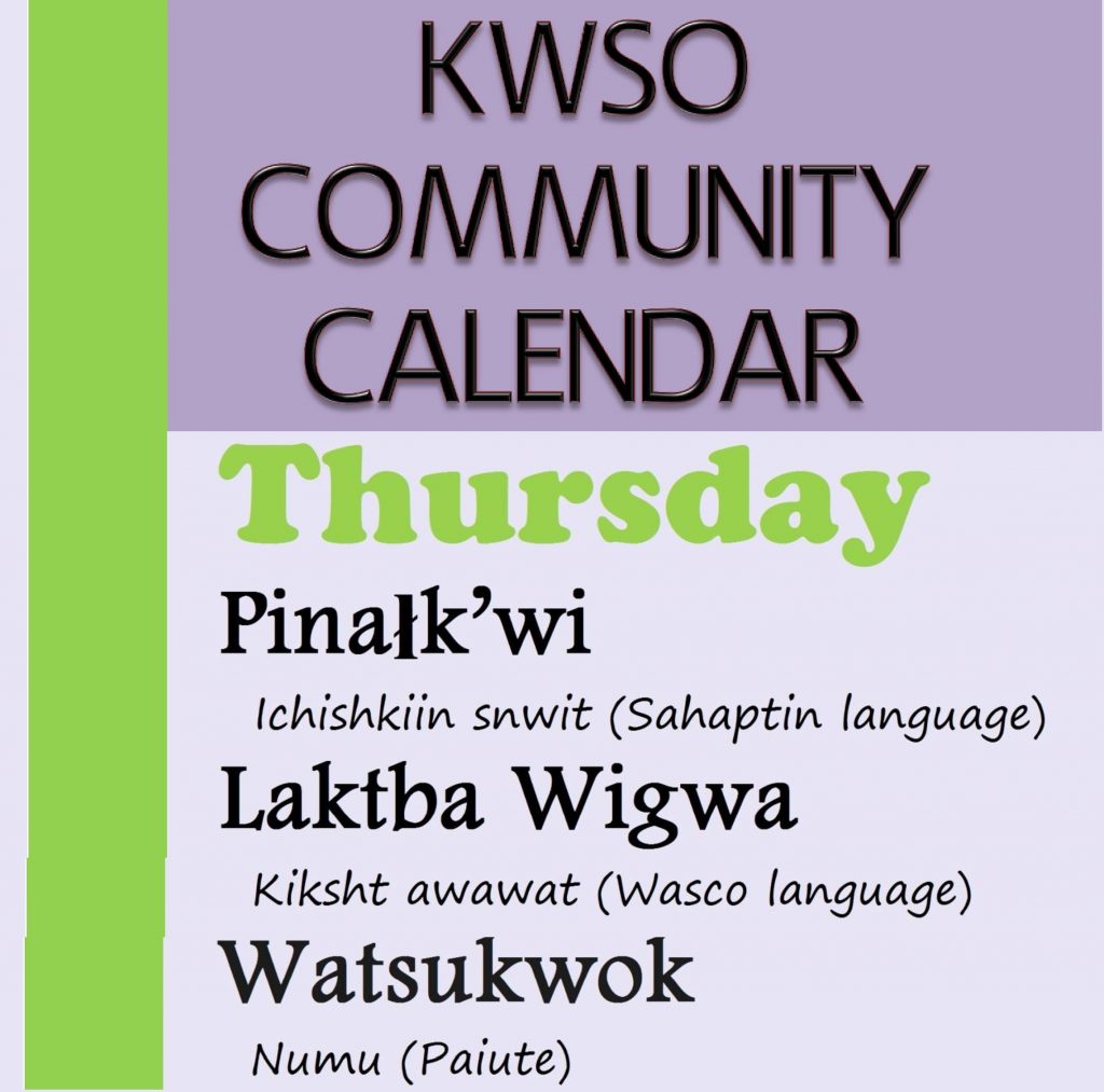 - There is Ichishkin Class today from noon-1:00 at the Museum. Bring your own lunch.