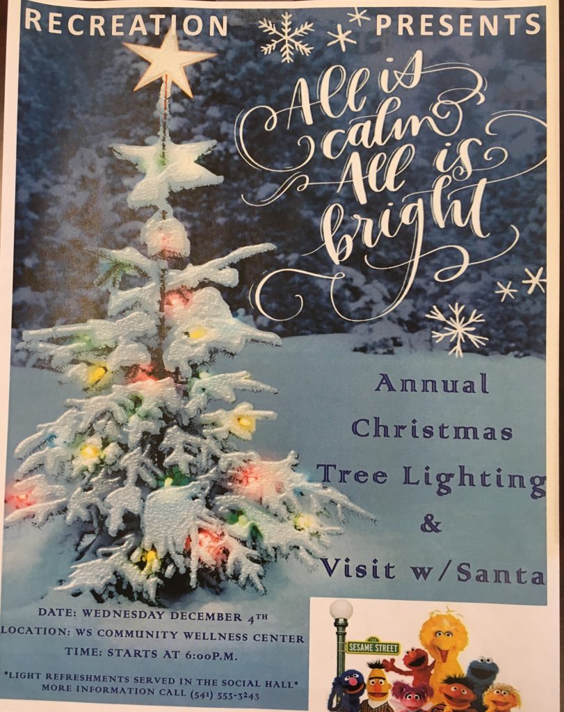 Event Flyers12/04/19 Warm Springs Recreation Christmas Tree Lighting Posted on November 25, 2019October 7, 2025 by gilbert.brunoe@wstribes.org 25 Nov For a copy of the Flyer…click WS Rec Xmas Lighting gilbert.brunoe@wstribes.org 11/30/19 Name Giving for Lenora and Tyree 12/11/19 Warm Springs Recreation Car Light Parade