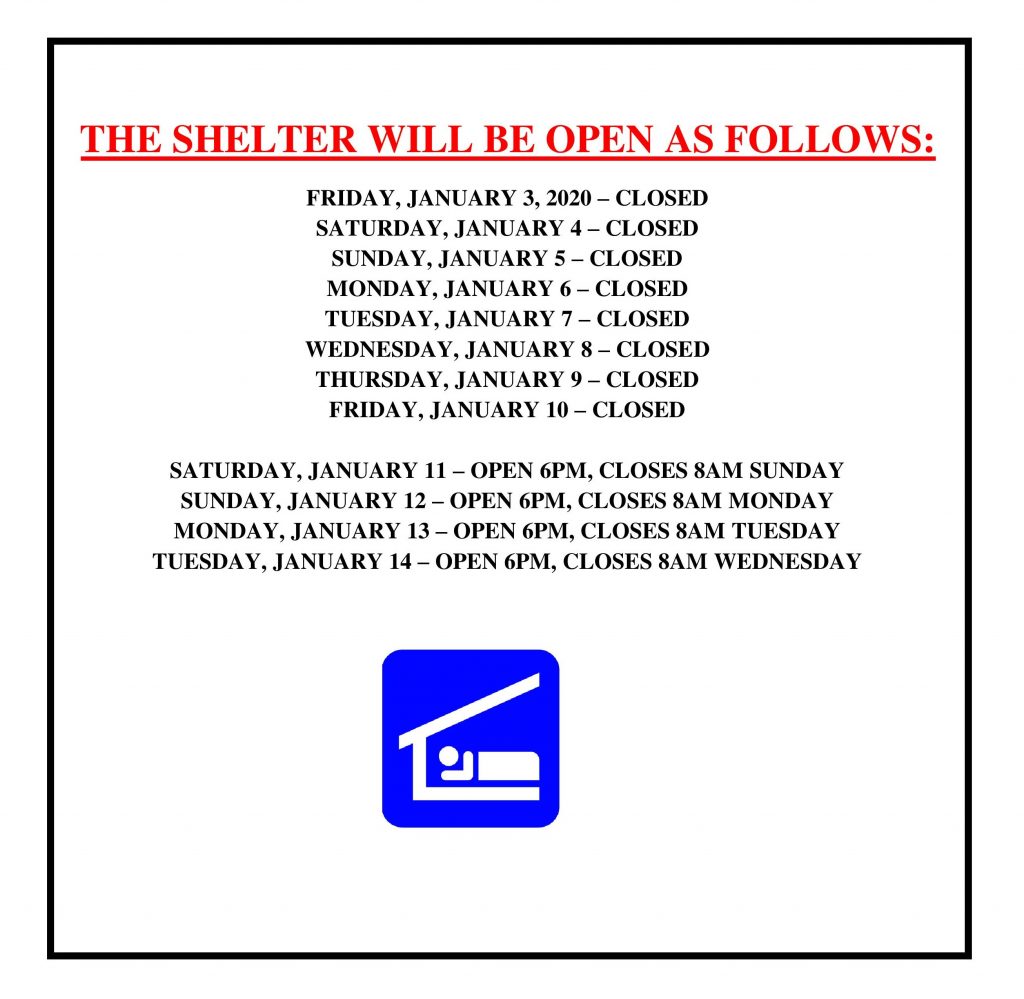 You can see the schedule for SHELTER HOURS HERE