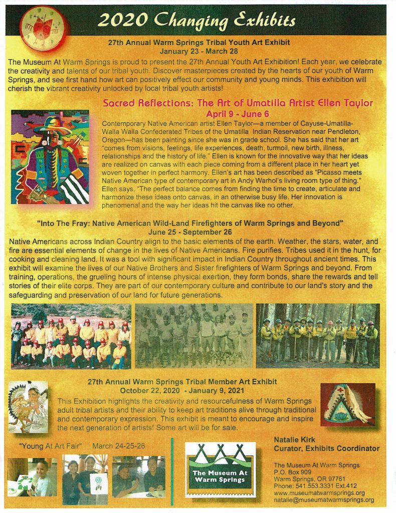 Event Flyers022120 Museum 2020 changing exhibits Posted on February 24, 2020October 7, 2025 by gilbert.brunoe@wstribes.org 24 Feb For a copy of the flyer…click HERE gilbert.brunoe@wstribes.org KWSO News for 2/24/20 042320 Veteran’s & Family Healing Circle Gathering