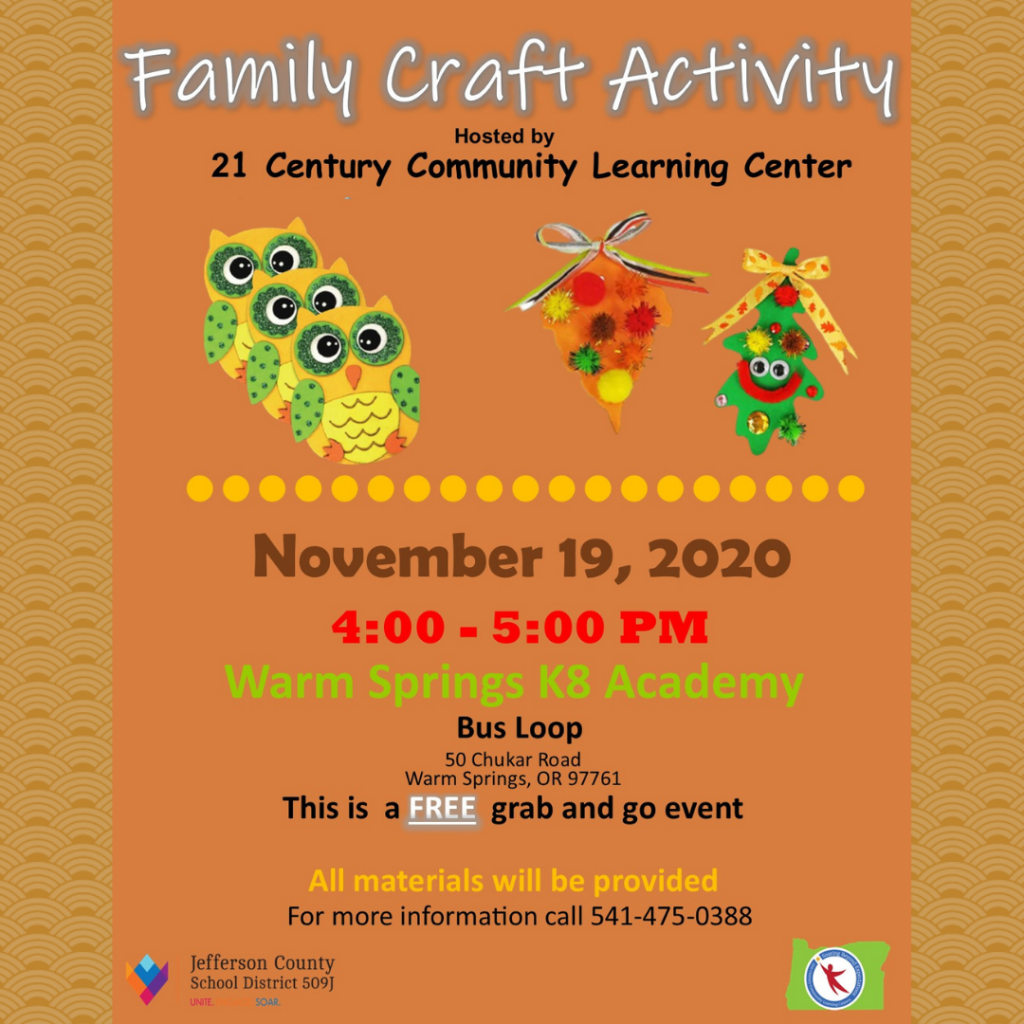You can Drive through the Warm Springs K-8 Academy Bus Loop this Thursday afternoon from 4-5pm, to pick up materials for a “Family Craft Night” at home!