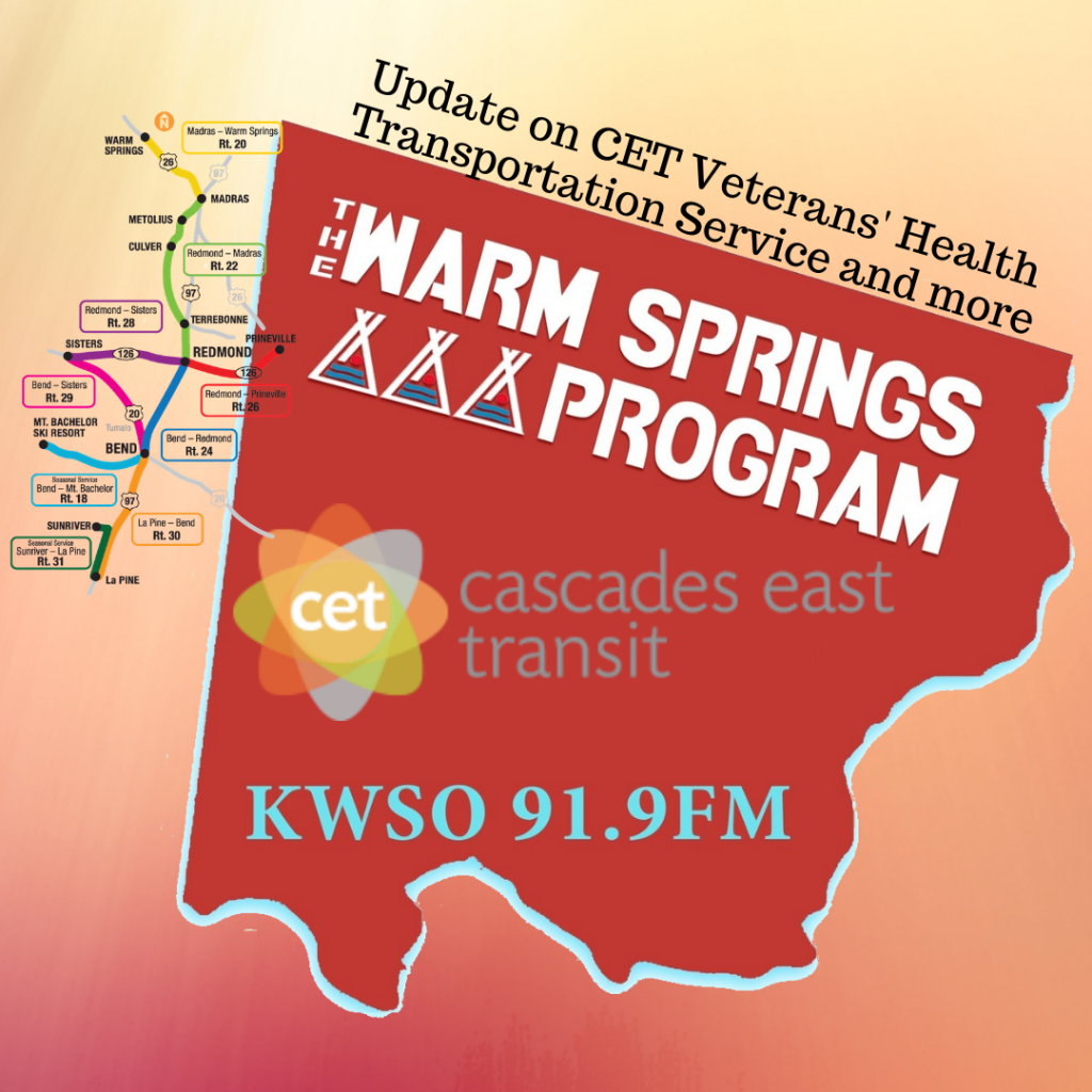 ProgramsCascade East Transit’s Veterans Health Service Posted on April 5, 2021 by Luis Baez 05 Apr KWSO Radio · 040521 Warm Springs Program Cascade East Transit Luis Baez KWSO COVID-19 UPDATE 4/5/21 Pandemic Struggles How to Help our Kids with Jane Kirkpatrick