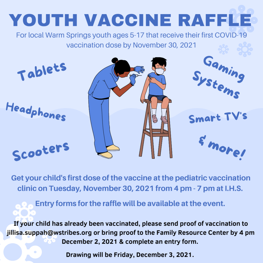 There is a COVID-19 vaccination Clinic next Tuesday afternoon (11/30/21) from 3 until 7 – for all kids 5 to 17 years old – at the Health & Wellness Center.