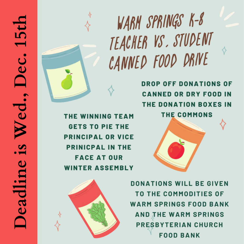 It’s Students vs. Teachers for the Warm Springs K8 Academy Food Drive.