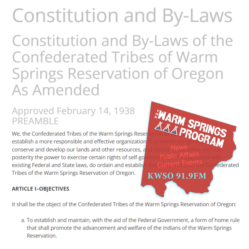 ProgramsCTWS Constitution & Bylaws Posted on January 24, 2022 by sue.matters 24 Jan KWSO Radio · CTWS Constitution & Bylaws For Tribal Council – KWSO Warm Springs Program Podcast sue.matters CTWS Program Updates week of Jan. 3, 2022 KWSO Calendar for Tue., Jan. 25, 2022