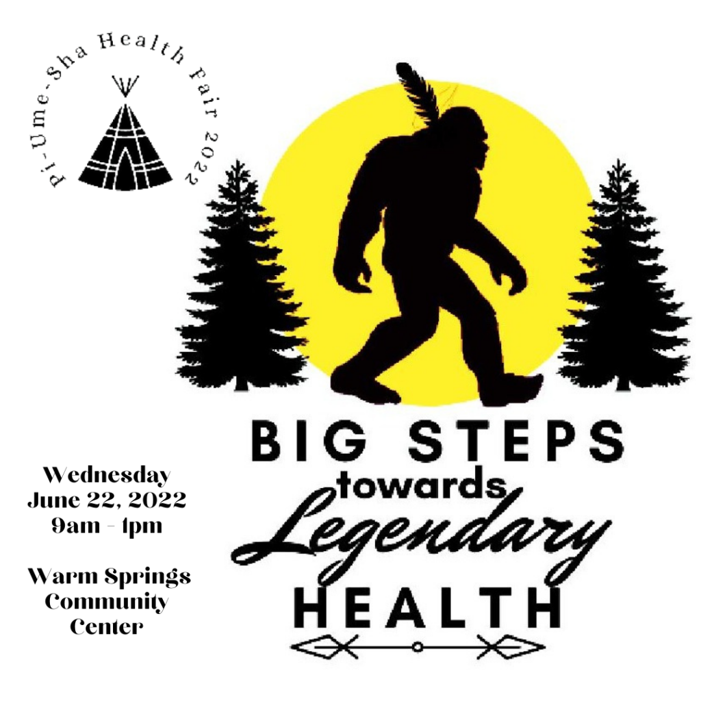 Although the Pi-Ume-Sha Treaty Days Powwow will not be held this year, with not enough time to plan, some of the associated activities will be happening including the Pi-Ume-Sha Health Fair on Wednesday, June 22, 2022 from 9am – 1pm outside the Warm Springs Community Center.