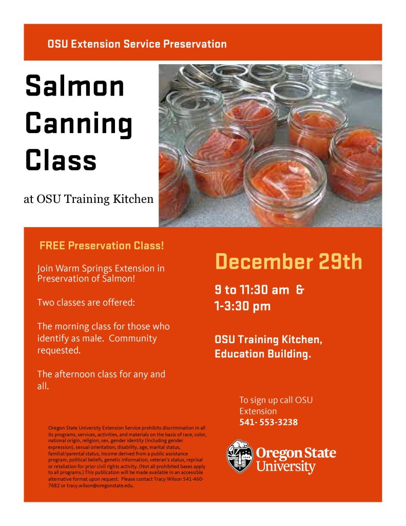 Warm Springs OSU Extension is offering a Salmon Canning Class Thursday December 29th.