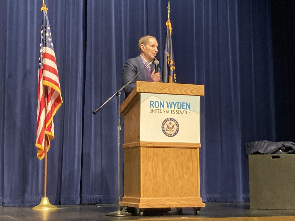 U.S. Senator Ron Wyden held a town hall at the Madras Performing Arts Center Friday afternoon with close to 200 community members present, including many students.