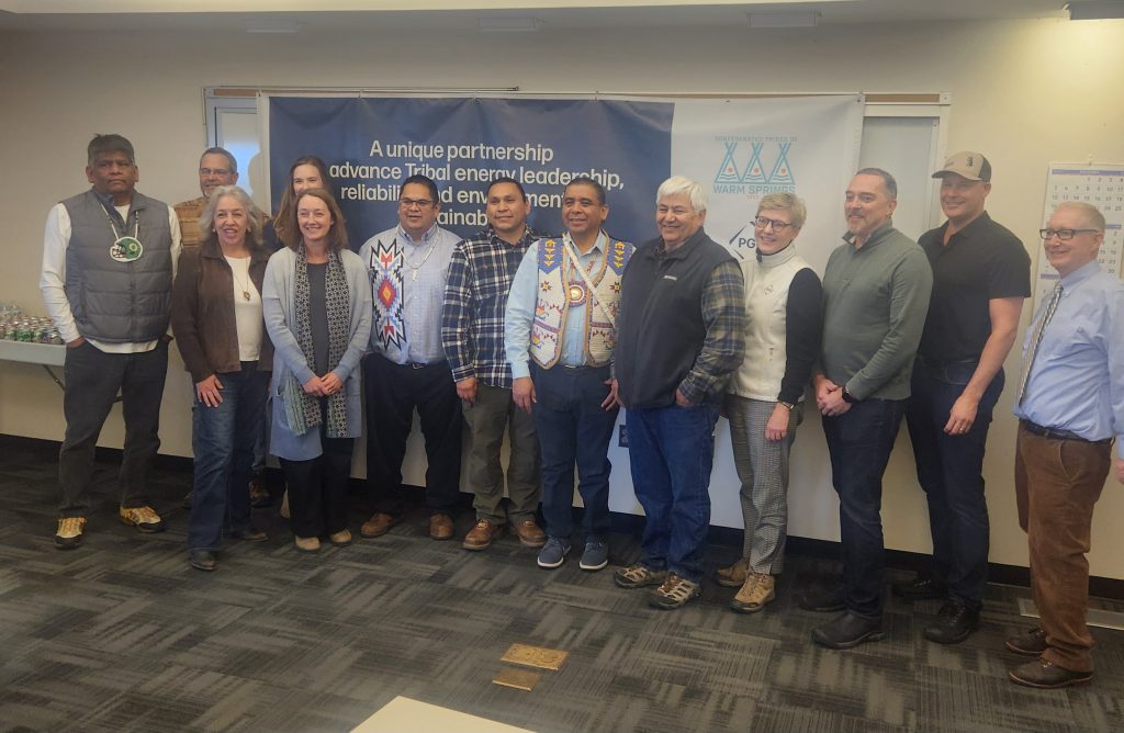 The Confederated Tribes of the Warm Springs, alongside Portland General Electric (PGE), gathered Friday, December 1, 2023, at the Pelton Round Butte Hydropower Project to celebrate the launch of their partnership to complete a major transmission upgrade in Oregon.